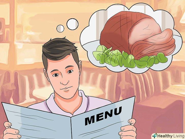 - Намагайтеся віддавати перевагу здоровій і корисній їжі. [13] коли принесуть меню, ви з гордістю замовите і з'їсте корисне блюдо.