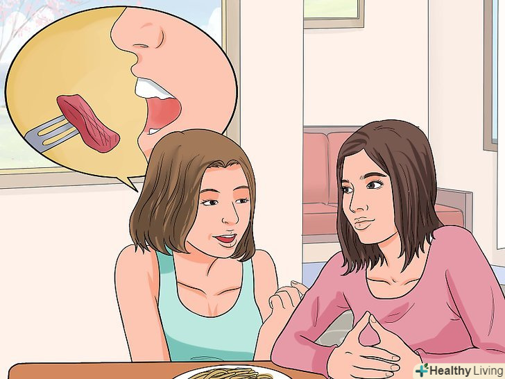 - Якщо ви розумієте, що відкушуєте їжу великими шматками або розмовляєте з повним ротом, то спробуйте змінити власну поведінку, спостерігаючи за собою з боку.