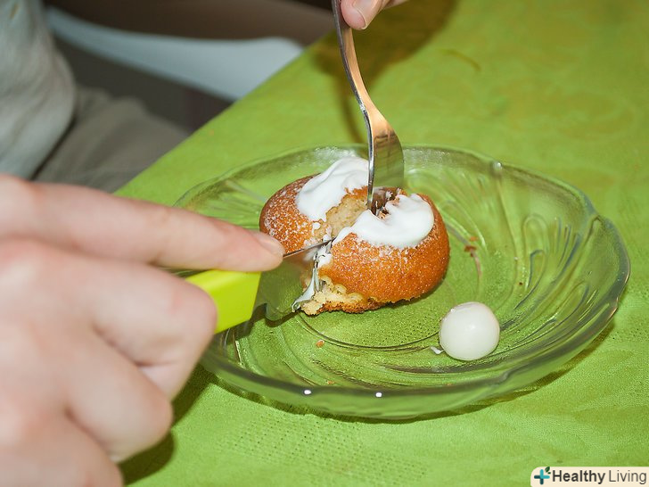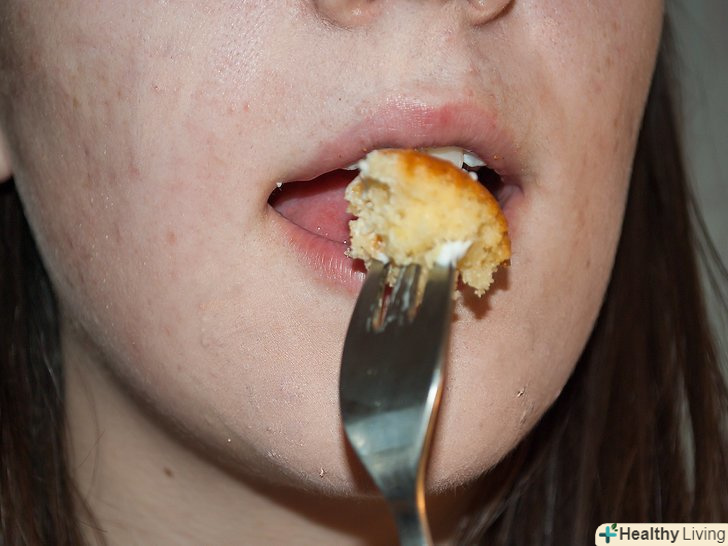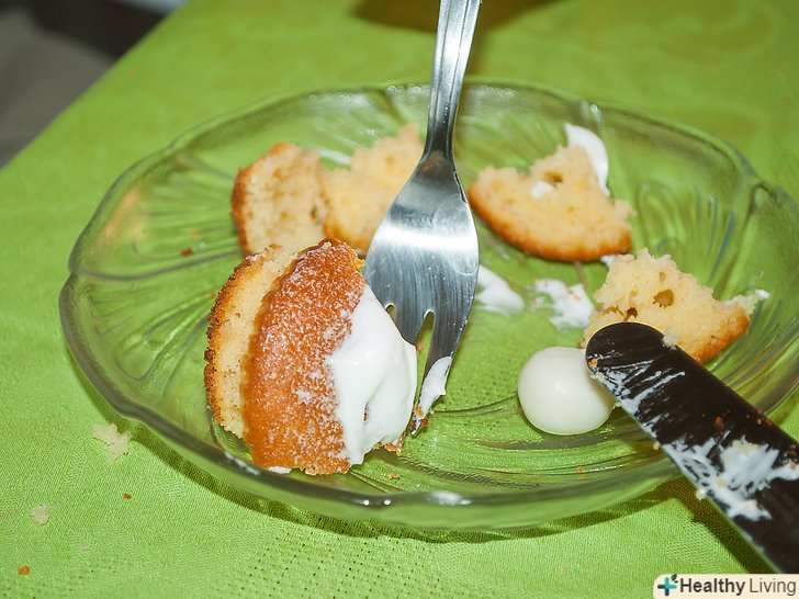 Починайте їсти кекс, наколюючи маленькі шматочки. Зупиніться, якщо потрібно витерти обличчя або руки.