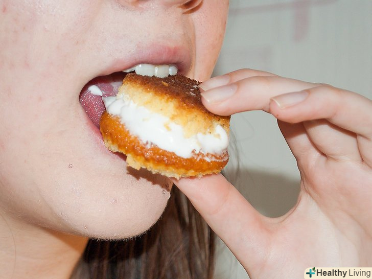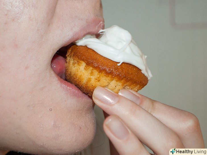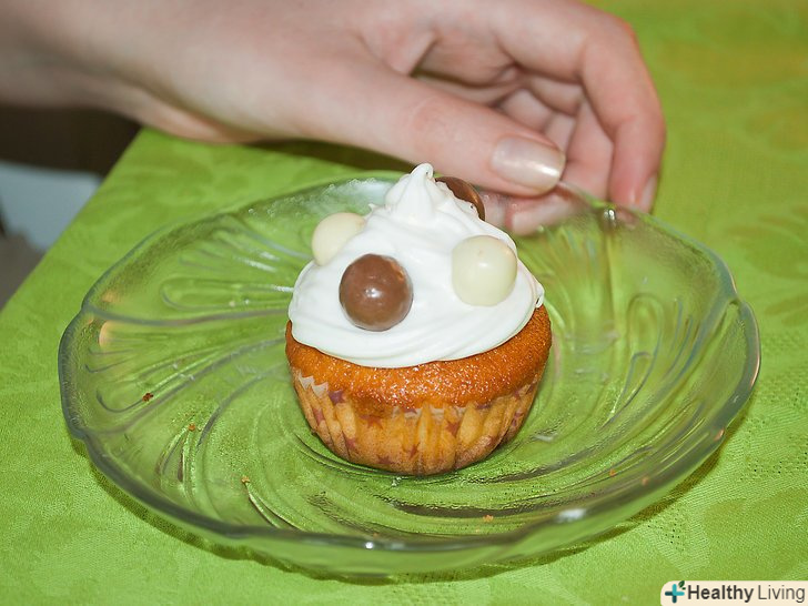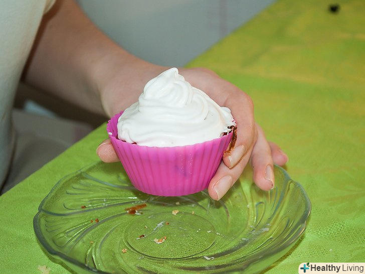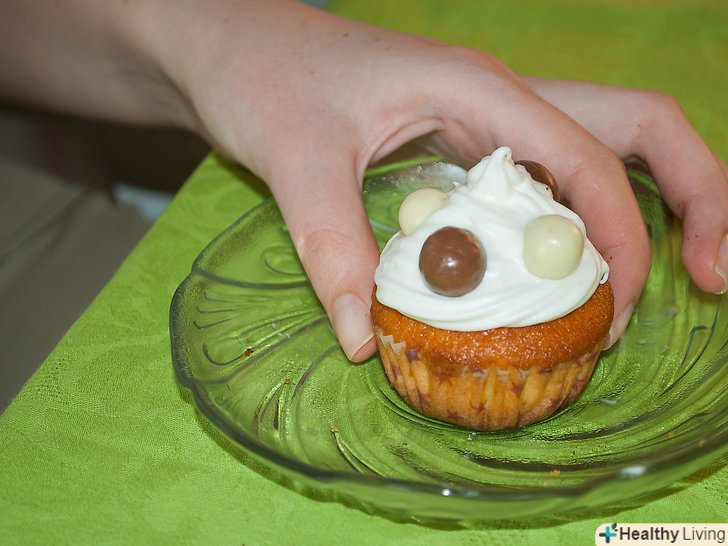 Тримаючи кекс біля обличчя, почніть їсти маленькими шматочками.