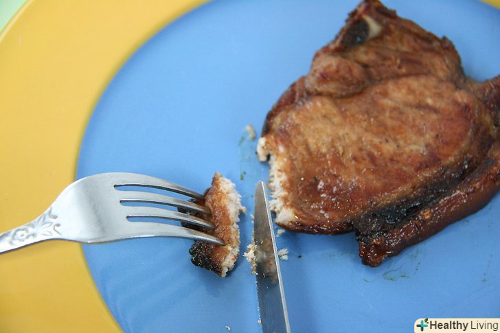 Розріжте їжу на маленькі порції.дуже важливо не класти в рот велику кількість їжі відразу, так як це дуже сильно ускладнює процес ретельного пережовування. Чим менше ви відкушуєте, тим краще.
