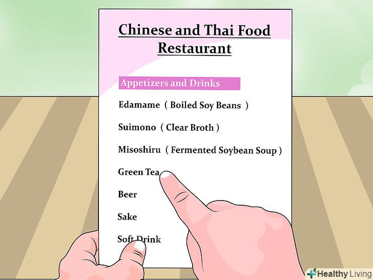 Замовляйте закуски і напої у офіціанта.якщо ви хочете з'їсти щось під час приготування суші, попросіть едамаме (варені соєві боби), суімоно (прозорий бульйон) або місошіру (суп з ферментованих бобів сої). Попити можете взяти зелений чай, пиво, саке або воду; безалкогольні напої будуть пригнічувати тонкий аромат суші.
