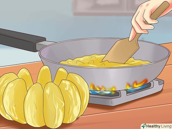 Додайте часточки в кінці процесу приготування. якщо ви використовуєте фрукт вугілля в приготованому блюді, наприклад стір-фрае, вам слід додати підготовлені часточки в кінці процесу приготування, щоб вони не розпалися.- Часточки фрукта вугілля добре підходять для стир-фрая з солодким соусом і солодкими овочами, такими як солодкий перець. Спочатку приготуйте всі інші інгредієнти і додайте часточки за 5 хвилин до кінця приготування, помішуючи їх акуратно і тримаючи їх на вогні стільки, скільки потрібно, щоб вони нагрілися, але не розвалилися.