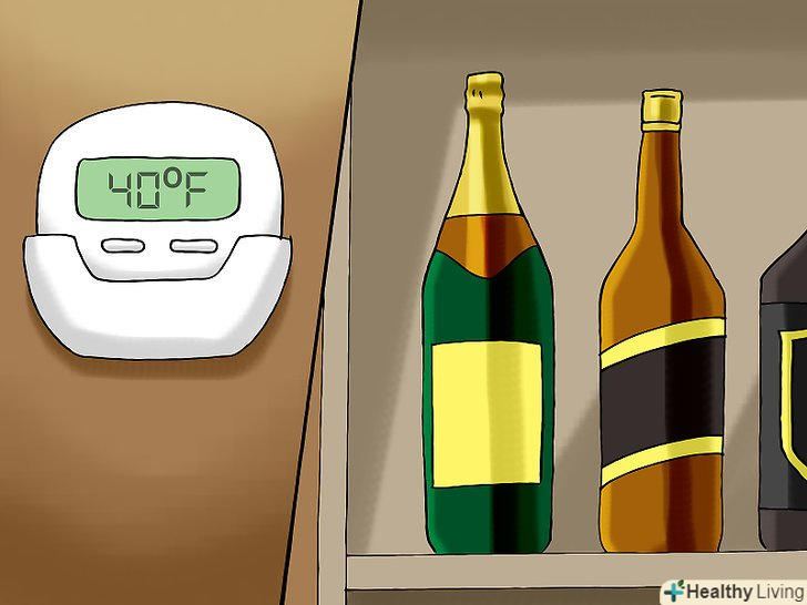 Зберігайте шампанське в прохолодному місці. перед подачею покладіть шампанське (або вино) в прохолодне (але не холодне) приміщення, далеко від прямих сонячних променів і з мінімальними коливаннями температури. Ідеальним буде підвальне приміщення з температурою 4-15 °C. [4]