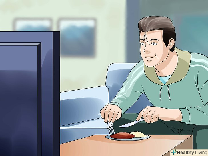 Намагайтеся їсти перед телевізором. телевізор під час їжі, як правило, розглядається в якості негативного фактора, тому що люди часто при цьому переїдають. Насправді це може піти на користь, якщо ви спробуйте одночасно дивитися телевізор і є, не акцентуючи на цьому процесі особливої уваги. [2]