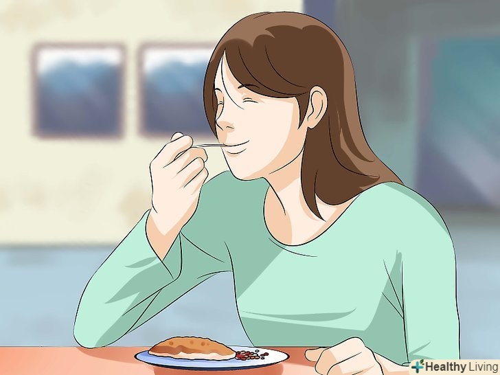 Смакуйте кожен шматочок страви. Якщо у вас виникли труднощі з апетитом, можна почати з малого. Замість того, щоб сприймати їжу як щось необхідне, постарайтеся розглядати її в якості приємного досвіду. Знайдіть страви, які любите, і спробуйте підходити до їх поїдання з наміром оцінки смакових якостей і своїх відчуттів.