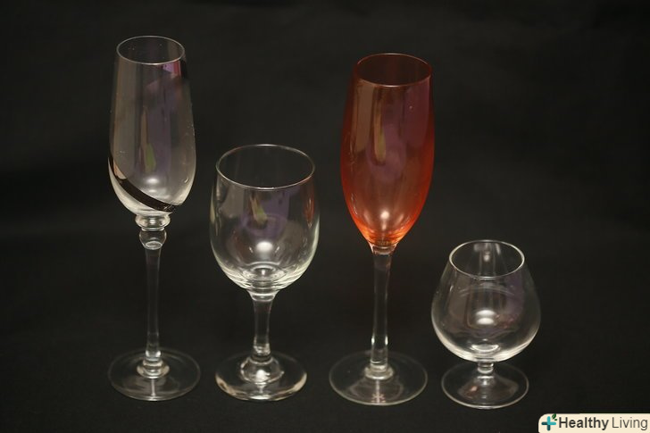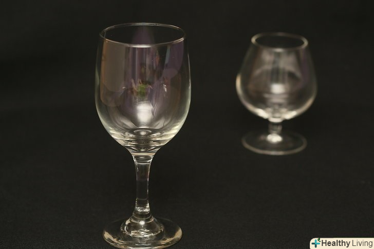 Виберіть два різних типи і розміру келихів для вина.менший келих буде для білого вина, більший – для червоного. Зазвичай, більш насичені вина подаються в келихах більшого розміру, легкі фруктові вина добре себе розкривають в келихах поменше. Причина, по якій білі вина подаються в маленьких келихах в тому, що біле вино не повинно нагріватися перед вживанням. Що стосується більшого розміру келихів для червоного вина, червоне вино любить дихати і потребує тепла рук, в процесі бродіння воно отримує багато кисню і краще передає аромат.- Вибирайте келихи більш округлої» Пузатої " форми, щоб вино розкрило свій букет і аромат. Для цього провину потрібно простір.