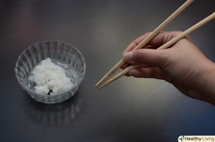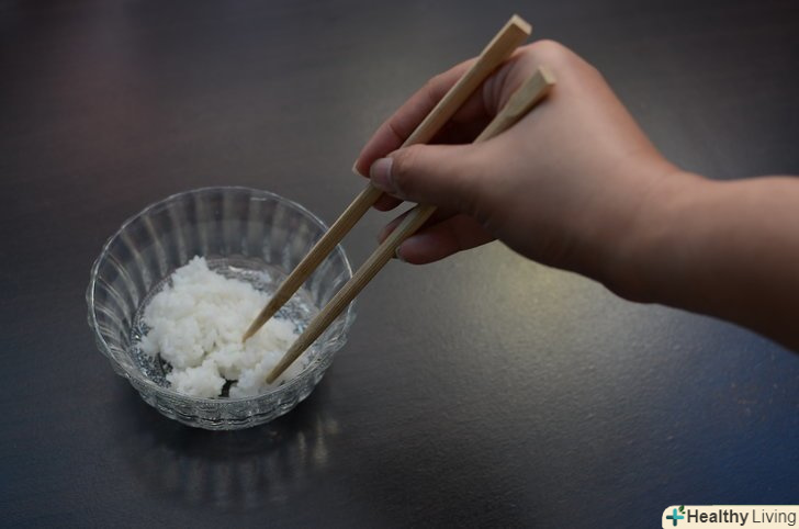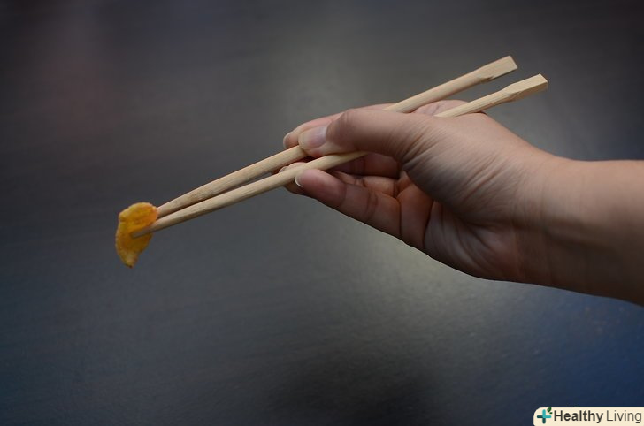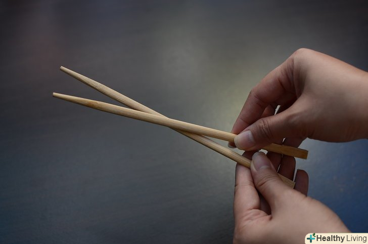 Якщо ви використовуєте дерев'яні палички для їжі, почніть з того, що потріть їх один об одного, щоб видалити всі маленькі тріски. навчаючись тримати палички для їжі, корисно помістити їх у вашу руку по одній.