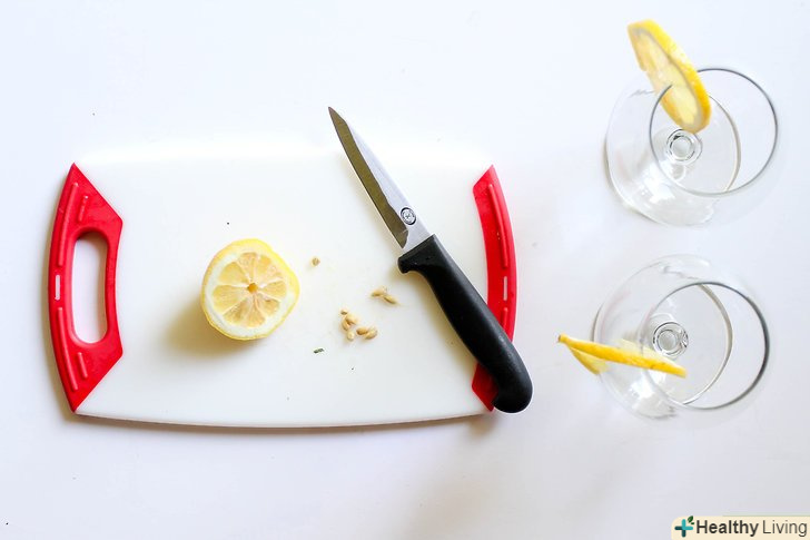 Прикрасьте скибочками лимона склянки.