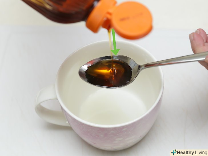 Відміряйте мед. покладіть в кухоль з лимонним соком дві столові ложки (30 мілілітрів) меду. Мед не тільки має антибактеріальні властивості, але і обволікає і заспокоює хворе горло. [3]