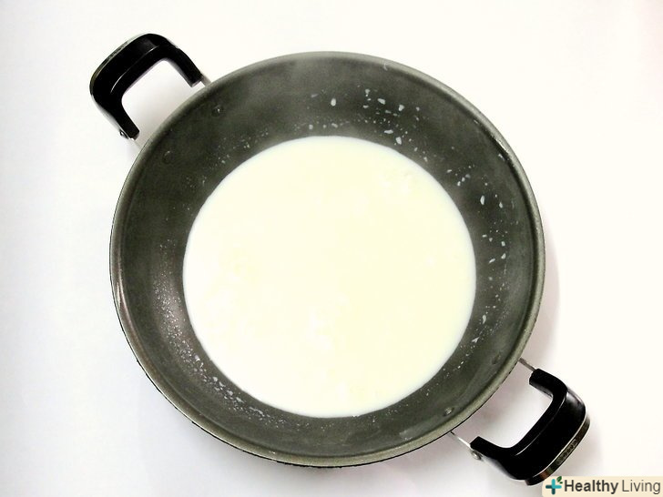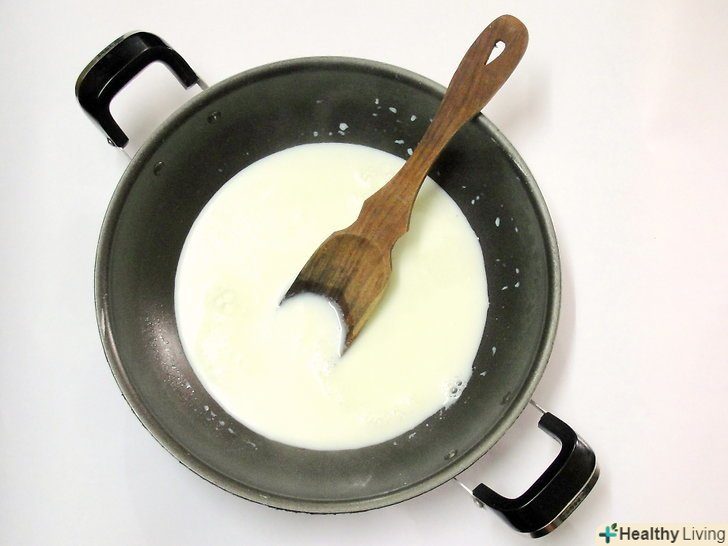 Коли молоко почне кипіти, зменшіть вогонь.- Продовжуйте помішувати молоко і кип'ятіть його близько 10 хвилин (або поки молоко не зменшиться до 3/4 початкового об'єму).