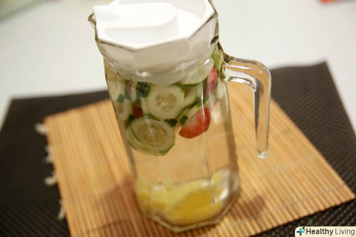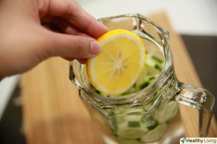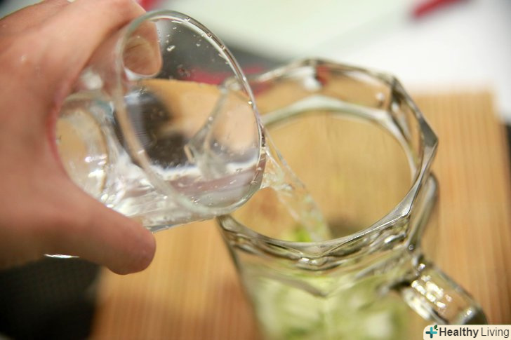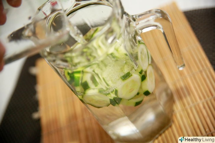 Долийте в глечик води.Один і той же огірок і різні добавки, які ви використовуєте (читайте далі), можна використовувати кілька разів. Просто залиште шматочки огірка в глечику і заповніть його водою.- Коли вода стане позбавленою смаку, просто викиньте або з'їжте залишилися огірки.
