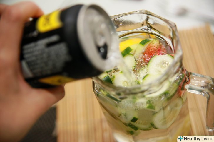 Використовуйте воду з газом замість звичайної води.заповніть глечик газованою водою тільки наполовину і дайте настоятися. Звичайну воду додавайте охолодженої і тільки перед подачею на стіл, щоб збереглося більше смаку і бульбашок.- Такий напій буде за смаком нагадувати комерційні газовані напої, але його перевага буде в тому, що він не містить калорій.