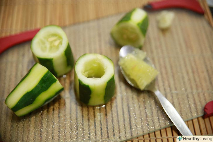 - Якщо хочете, перед тим, як нарізати огірок, ви можете за допомогою ложки прибрати з нього насіння і м'яку середину. Насіння огірків їстівні, але багато хто воліє прибирати їх.