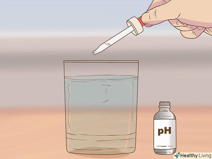 Додайте PH краплі.вони містять в собі висококонцентровані сильнодіючі лужні мінерали. Ви можете купити такі краплі в аптеці або через Інтернет. Прочитайте інструкцію, зазначену на упаковці тих чи інших крапель, щоб знати, скільки крапель вам знадобиться.[4]- Хоча такі краплі і збільшують рівень лугу у вашій воді, вони не очищають її від різних домішок, наприклад, хлору або фтору, які можна виявити у водопровідній воді.