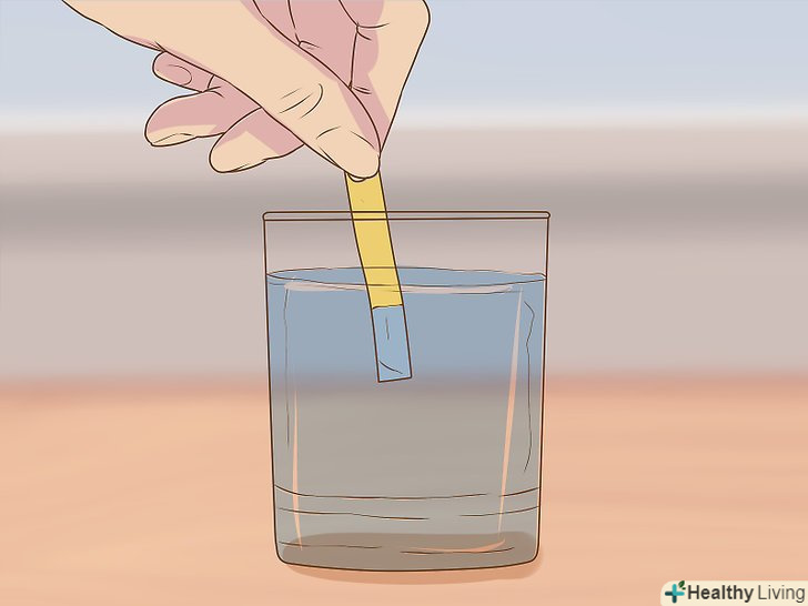 Визначте рівень pH.Перед і після лугу слід встановити рівень кислотності води. Таким чином, ви будете знати, які саме зміни ви повинні зробити. Зазвичай у води показник рівня pH дорівнює 7, але через різних домішок він може зрушуватися вліво (до більш кислотного показника). Ідеальний рівень рН для чистої питної води становить 8 або 9. Такого показника можна досягти через подщелачивание води.[1]