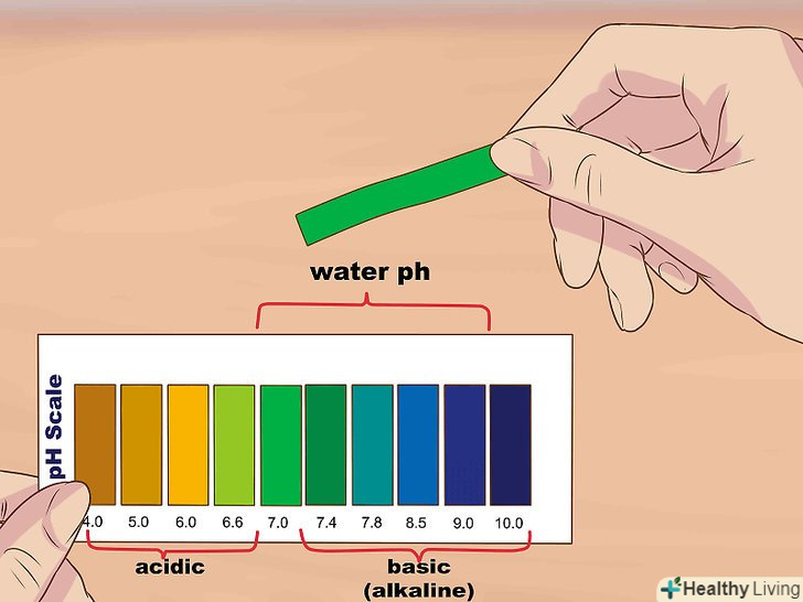 Розрізняйте рівні pH Вашої води.якщо вода має показник вище 7, це означає, що вода лужна, якщо нижче 7 – кислотна. Ваша вода повинна мати рівень рН десь між 7 і 9.