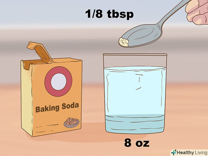 Харчова сода. В 240 мл води розчиніть 600 мг харчової соди. Харчова сода має високий вміст лугу. Коли харчова сода змішується з водою, вона збільшує лужні властивості води. Сильно збовтайте (якщо взяли пляшку) або розмішайте (якщо взяли склянку) розчин, щоб сода повністю розчинилася у воді.[2]- Якщо ви на дієті з низьким вмістом натрію, не додавайте в воду харчову соду. Вміст натрію в ній просто зашкалює.