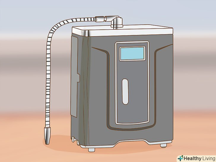 Купуйте іонізуючий водяний фільтр.такі фільтри легше переміщати і вони дешевше, ніж покупка нового електричного іонізатора. Вони працюють за таким же принципом, як і звичайні фільтри. Налийте воду в фільтр на три-п'ять хвилин. Поки чекаєте, вода протікає через серію фільтрів. Після того, як вода пройде через фільтри, вона потрапляє в контейнер з лужними мінералами.[5]- Такі фільтри можна купити в магазині побутової техніки, в розділі товарів для кухні.