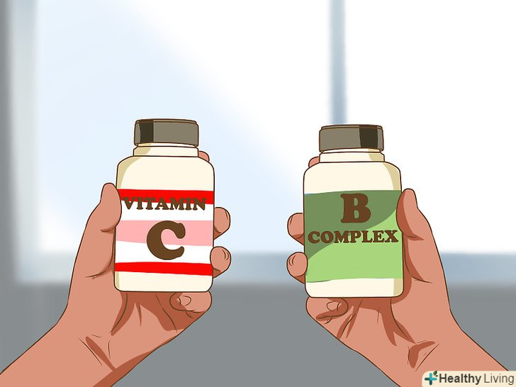 Читайте інструкції на упаковці.якщо ви вирішили використовувати порошкоподібні вітаміни або рідку форму, читайте інструкцію на упаковці. Це допоможе вам правильно визначити необхідну дозу.- Не приймайте більше добової норми. Так ви уникнете проблем зі здоров'ям, які можуть виникнути через прийом занадто великої кількості вітамінів.