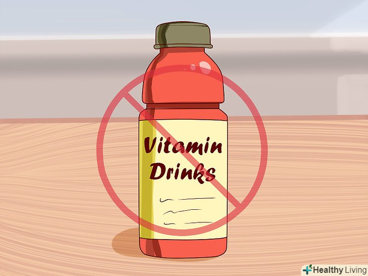 Не вживайте комерційні вітамінні напої.існує безліч напоїв, які позиціонуються в якості вітамінних. Багато з них не містять потрібної кількості вітамінів, але мають при цьому в своєму складі значну кількість цукру. Один експерт сказав, що користь цих напоїв лише в тому, що вони безалкогольні.[15]- Пийте подібні напої лише в крайньому випадку і тільки заради їх смаку.