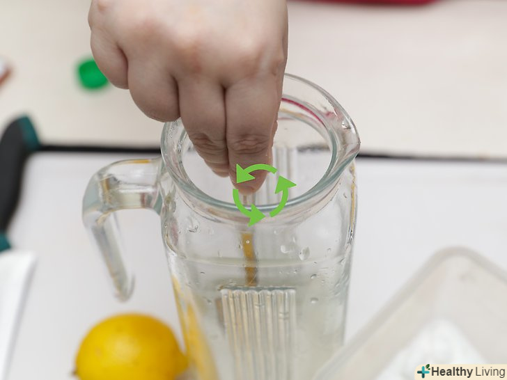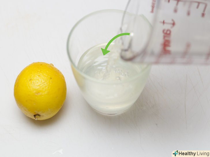 Розбавте лимонний сік рівною кількістю води.співвідношення води і лимонного соку в склянці повинно бути 1:1.