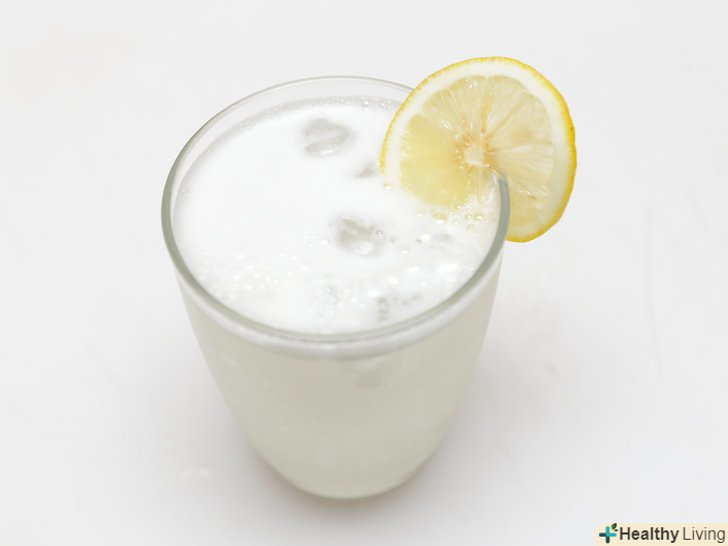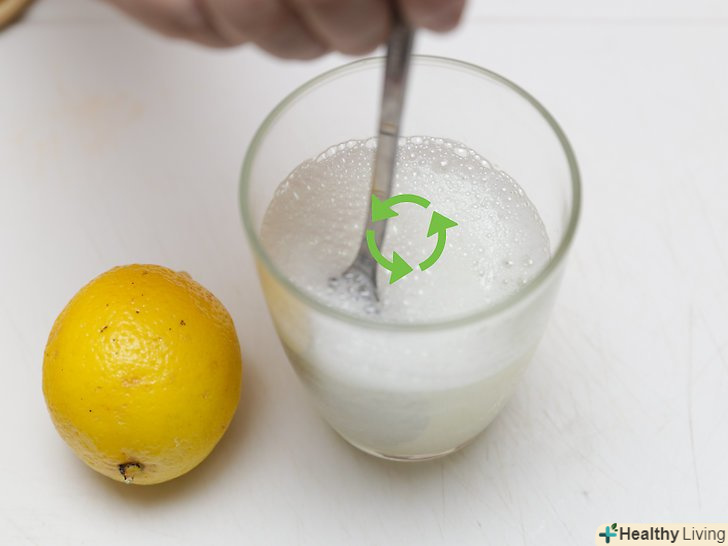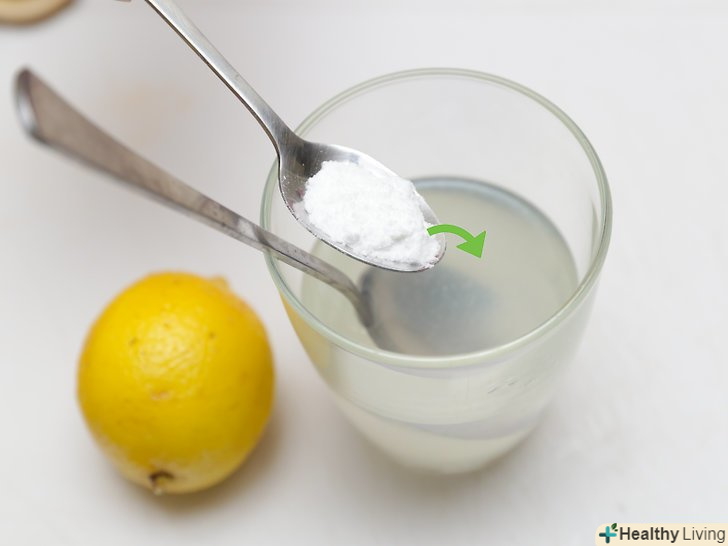 Видавіть в стакан сік 1 лимона.розріжте лимон навпіл і за допомогою соковижималки для лимона видавіть сік з обох половинок. Процідіть сік через ситечко, щоб відфільтрувати м'якоть і насіння. Після цього м'якоть і насіння можна буде викинути.- Цей метод можна перетворить в відмінний науковий експеримент, так як кислота в лимонному соку вступить в реакцію з харчовою содою і зробить її шипучою.[9]