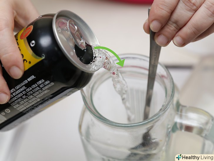 Додайте 1 чайну ложку харчової соди і перемішайте.якщо ви хочете провести науковий експеримент, додавайте по ½ чайної ложки соди за раз, щоб краще розглянути реакцію.[10]