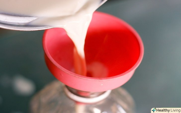 Після того, як воно досить охололо, щоб пальцях, притулившись до каструлі протягом 10 секунд не було гаряче, використовуйте воронку, і перелийте молоко в контейнер, пляшку або термос.намагайтеся, щоб молоко не потрапляло на краї пляшки, це може привести до потрапляння небажаних бактерій.