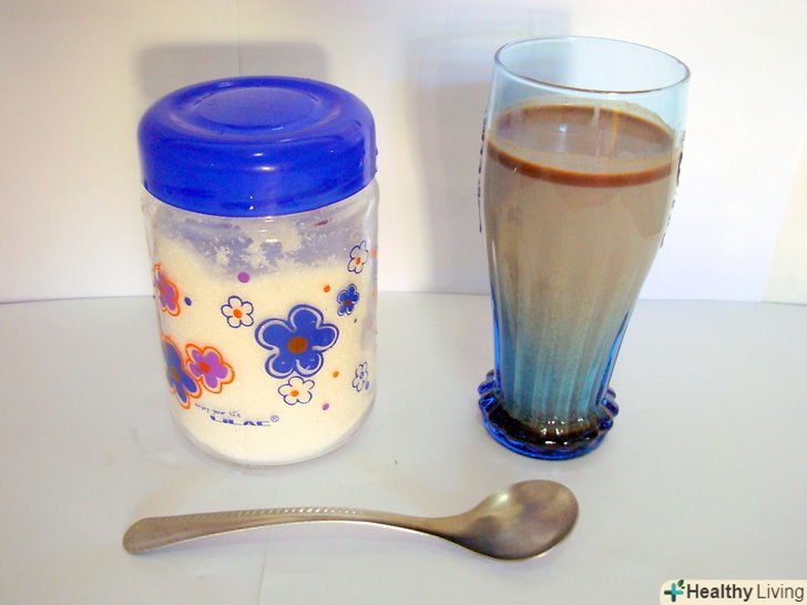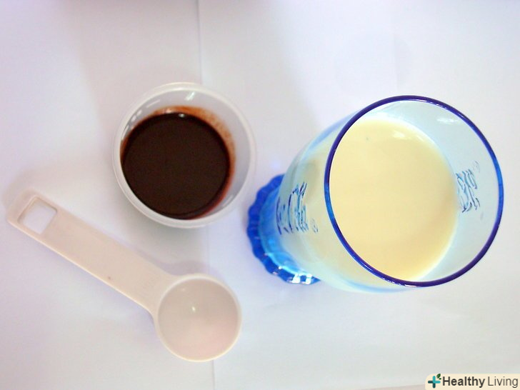 - Додайте шоколадний порошок в контейнер, який щільно закривається і додайте молоко. Щільно закрийте контейнер. Потрясіть закритий контейнер протягом 2-3 хвилин.