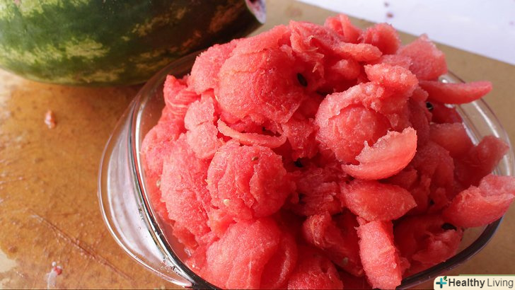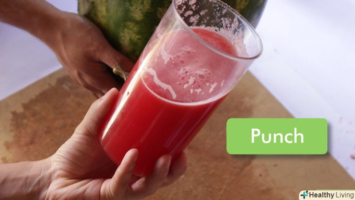 - Додайте кавун.додайте шматочки кавунової м'якоті в ваш напій для його приготування. Вона сприятиме подальшому вдосконаленню аромату і смаку. По можливості використовуйте повторно шматочки кавуна в пунші, щоб вони плавали, для гарного візуального ефекту.