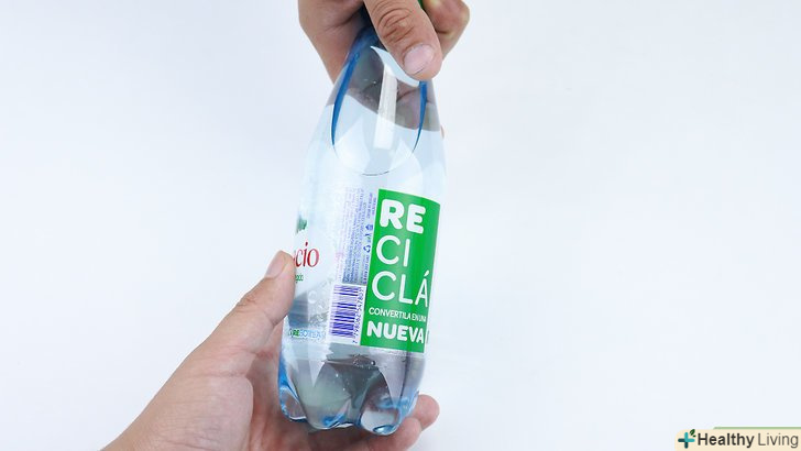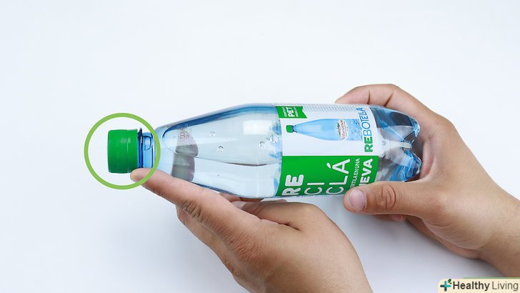 Візьміть пляшку з водою в руки.Марка води не має значення, просто виберіть зручну для вас пляшку.- Поставте пляшку на поверхню.візьміться за нижню частину лівою рукою, або правою, якщо ви лівша. Міцно тримайте її.