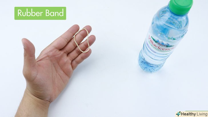 Знайдіть гумку.ви можете відшукати її в будинку або купити кілька штук в магазині.- Обмотайте гумку навколо кришки пляшки.[1] почніть з того, що надіньте гумку на кришку. Вона додасть додаткове зчеплення кришці з вашою рукою.
