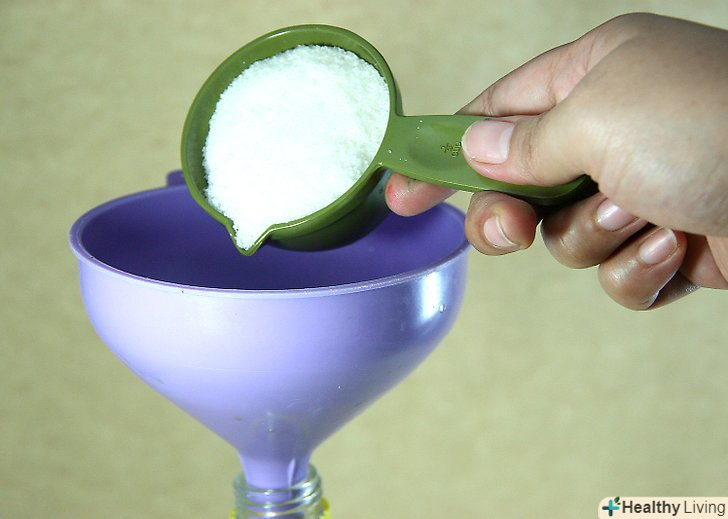 Додайте в пляшку 1 склянку цукру через суху воронку.залиште воронку на місці, поки не закінчите всі кроки і не будете готові закрити пляшку.