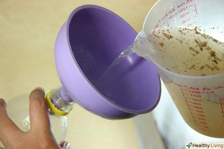 - Процідіть імбирний ель через сито, якщо вам не подобаються шматочки імбиру, плаваючі в ньому. Якщо ви цього не зробите, то імбир виллється в перший стакан або два, а велика частина опуститься на дно і потрапить в останній стакан напою. Відразу ж вимийте пляшки після вживання всього імбирного елю.