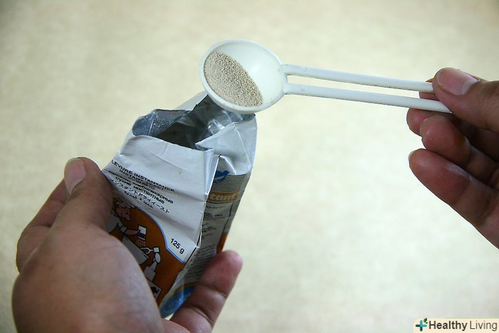 Відміряйте 1/4 чайної ложки свіжих гранульованих активних пекарських дріжджів.Використовуйте будь-який продукт, який знайдете в магазині здорових продуктів.