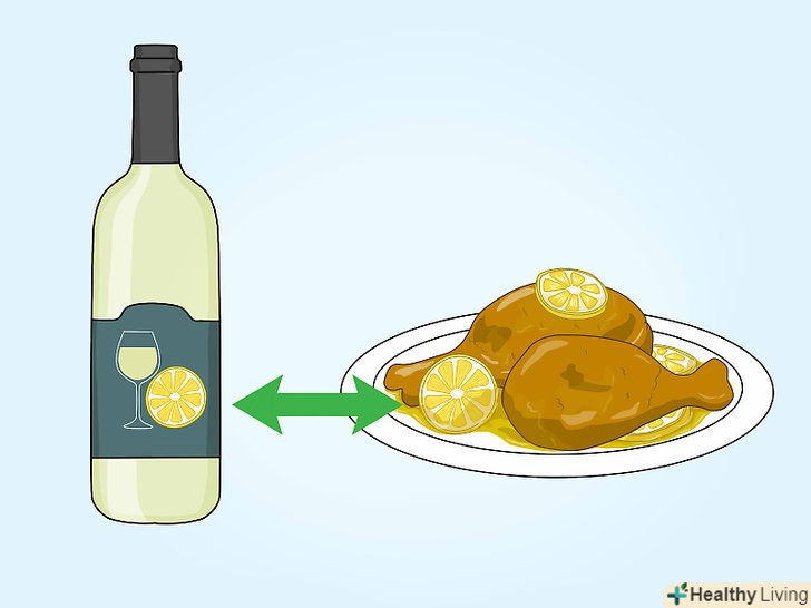 Підберіть прості поєднання вина і їжі. наприклад, поєднуйте легке цитрусове вино з куркою з лимонами. До свинини на грилі підберіть насичене вино з присмаком диму. Такі поєднання будуть безпрограшними і будуть підкреслювати кращі якості як вина, так і страви.- Підбираючи поєднання, думайте про те, яким був би смак їжі, якби до неї додали смаки, що містяться у вині. Наприклад, якщо у вас є насичене червоне вино «з нотками шоколаду, прянощів і чорниці», подумайте, чи поєднується шоколад, прянощі і чорниця з тим, що у вас на тарілці. Ідеальних методів вибору не буває, проте з цього можна почати. [2]