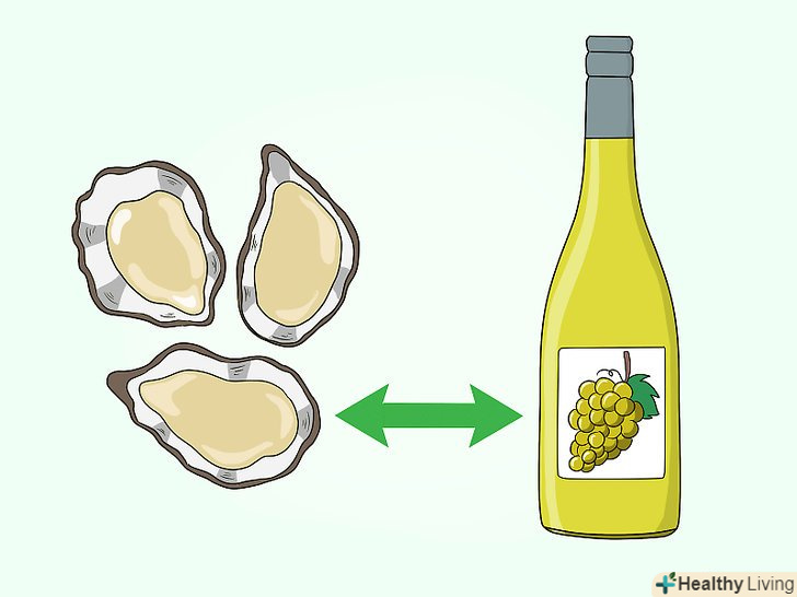 Якщо не боїтеся ризикувати, спробуйте поєднувати контрастують смаки. Є два підходи до вибору поєднань: за принципом схожості і за принципом відмінності. Жоден з підходів не можна назвати повністю вірним, проте вам варто спробувати обидва, щоб вам стало простіше вибирати вино. Якщо вирішите вибрати контрастні смаки, прагніть до балансу. Наприклад, солоні і кислі продукти на зразок устриць можуть бути збалансовані легким фруктовим Совіньон-блан . Гострий жирний каррі можна збалансувати кислими, свіжими цитрусовими винами (наприклад, рожевими).- Вибираючи контрастують поєднання, звертайте увагу на кислотність їжі і її текстуру. Жирній їжі і страв з вершками підходять кислі вина з різким смаком, а кисла їжа може бути збалансована насиченими і менш гіркими винами. [3]