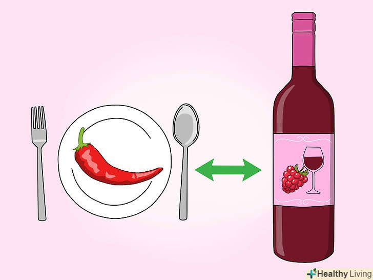 Поєднуйте солодкі фруктові вина з гострою їжею. розбавте гостроту солодким вином — це класичне поєднання. Пам'ятайте, що легкі вина є як серед червоних, так і серед білих. Найчастіше у винній карті будь-якого закладу є більш легкі і освіжаючі вина.- Солодкі вина начебто Рислінгу можуть поєднуватися з гострою їжею, а деревні вина (наприклад, шардоне ) підходять вершковим стравам і їжі з різними приправами.