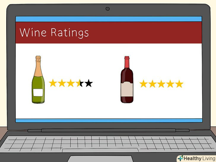 Спробуйте вибирати більш дорогі вина За рейтингом. якщо ви хочете справити на когось враження, спочатку вивчіть доступні варіанти. Існують спеціальні інтернет-ресурси і друковані видання, присвячені винам, які представлені на ринку вашої країни. Крім того, можна користуватися спеціальними додатками (наприклад, Vivino ) і читати відгуки в Інтернеті, щоб швидко визначити, чи варто вино своїх грошей.- У деяких магазинах вина з високими рейтингами відзначаються спеціальними наклейками. При цьому в магазині не можуть продаватися тільки вина з такими наклейками, і вам не варто відмовлятися від покупки вина, якщо на ньому немає цього позначення.