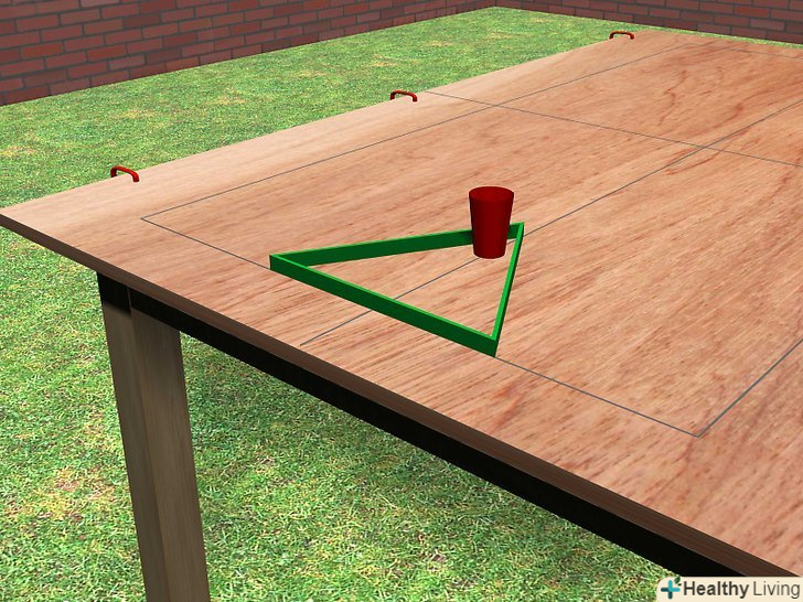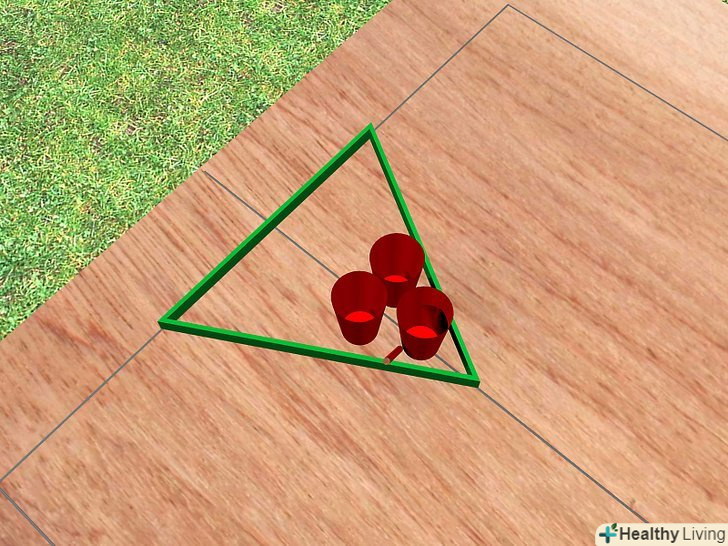Встановіть склянки трикутником в тому місці, де вони будуть стояти так, щоб верхівка трикутника потрапила на лінію посередині.