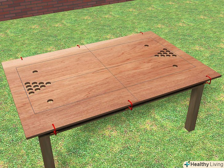 Повторіть попередній крок на іншій стороні столу. при свердлінні постарайтеся зробити отвори схожими на отвори з іншого боку.