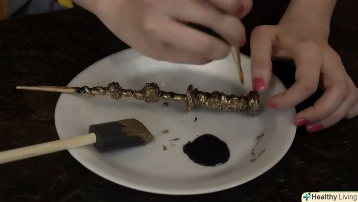 Трохи "зістаріть" паличку і дайте фарбі висохнути.Таким способом ви підкреслите опуклі візерунки на паличці. Більш темний відтінок фарби, яку ви використовуєте, нанесіть ватною паличкою або загостреною пензликом на всі тріщини і западинки візерунка на паличці. Потім більш світлим відтінком фарби підкресліть всі виступаючі краю на паличці.- Якщо ваша палички чорного кольору, вам потрібно буде підкреслити тільки виступаючі частини, якщо ж білого, то промальовувати потрібно тільки тіні.