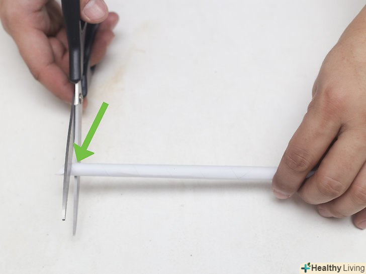 Рівно відріжте кінці.на кінцях згорнутої в рулон паперу зазвичай виходять гострі краї. За допомогою ножиць або канцелярського ножа відріжте обидва гострих кінця. Один кінець подрежьте більше, ніж інший: так ви зробите його ширше, як раз для того, щоб вийшла рукоять.