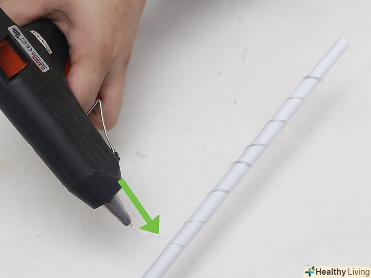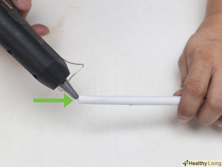 Скачайте папір до кінця і потримайте, поки клей не підсохне.це займе від 20 до 30 хвилин. Якщо вам незручно тримати паличку так довго, можна закріпити її за допомогою нитки. Клей обов'язково повинен висохнути, перш ніж ви приступите до наступного кроку.