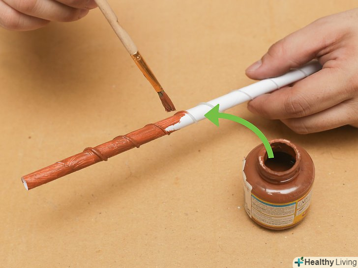 Спробуйте домогтися ефекту "старіння".змішайте більш темний відтінок фарби основного кольору і заповніть їм всі тріщини і відколи на паличці. Потім зробіть більш світлий відтінок фарби основного кольору і підкресліть їм всі видатні частини на паличці. Для цієї роботи візьміть невелику, загострену пензлик.