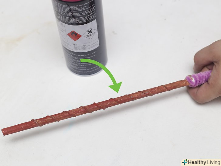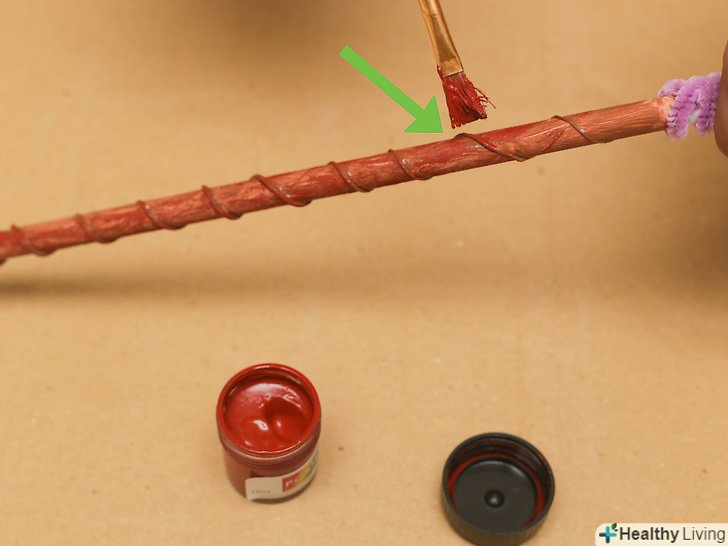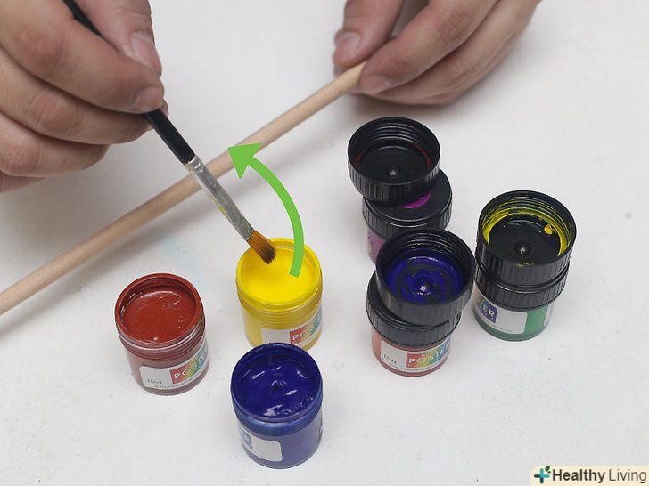 Обробіть паличку прозорою емульсією для закріплення акрилової фарби, щоб вона трималася довше.винесіть паличку на вулицю і покладіть на лист газети. Нанесіть закріплювач акрилової фарби і дайте висохнути, потім переверніть паличку і обробіть її з іншого боку. При необхідності повторіть ці дії.[8]- Наносити закріплювач не обов'язково, але так фарба на виробі буде триматися довше.