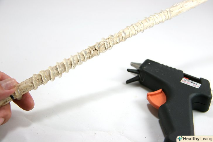 За бажанням за допомогою гарячого клею можна нанести візерунок на решту палички.цей матеріал ідеально підходить, щоб нанести спіралевидний візерунок на паличку, як у Герміони Грейнджер. Це можна зробити, обертаючи пальцями однієї руки паличку, а іншою рукою наносячи візерунок гарячим клеєм. А якщо у вас немає гарячого клею, можна обернути рукоять клейкою стрічкою, або використовувати полімерну глину, щоб зробити хорошу рукоять без клейового пістолета.