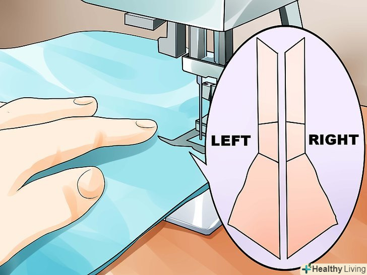 Пришийте останню третю деталь задньої правої частини капюшона.щоб завершити роботу над задньою правою стороною капюшона, необхідно пришити до неї останню третю деталь.- Не обрізайте тканину припусків. Цей запас тканини і далі буде йти в шви в міру сточування деталей між собою.