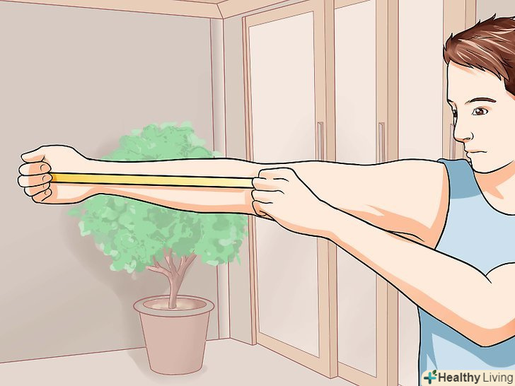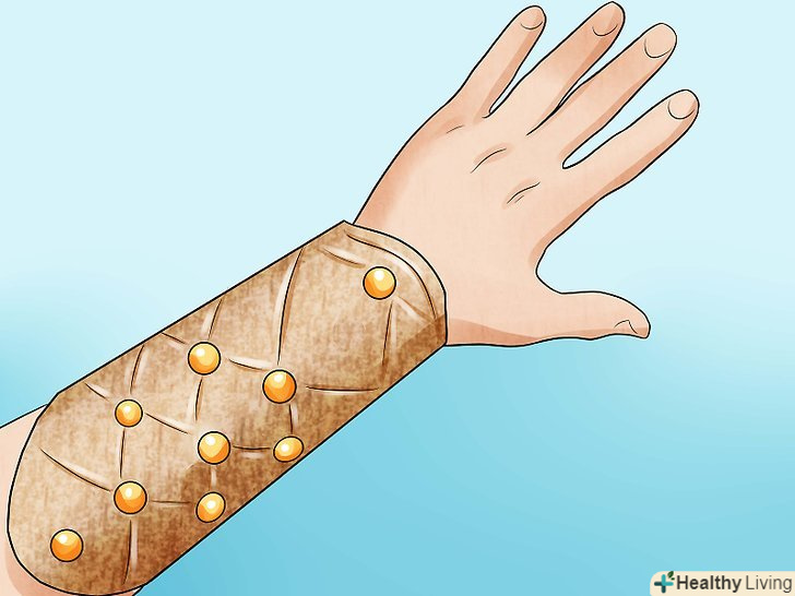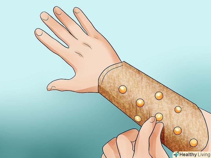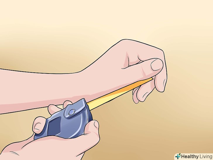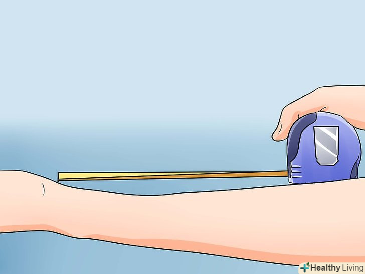 Виміряйте власну руку в області зап'ястя, щоб визначити розмір необхідних вам наручей.спочатку візьміть сантиметрову стрічку і виміряйте обхват зап'ястя.[9]
